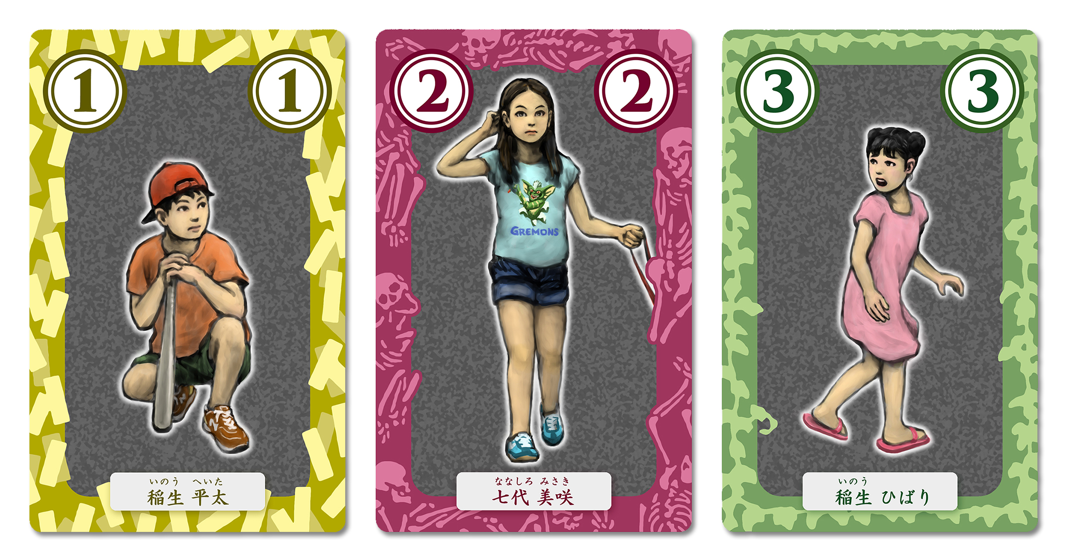 それぞれのスートは子ども・武器・お化け・場所の4種類に分かれています。