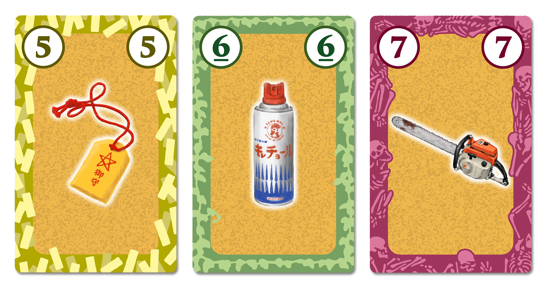 ツタ(緑)・おふだ(黄)・骨(赤)があります。